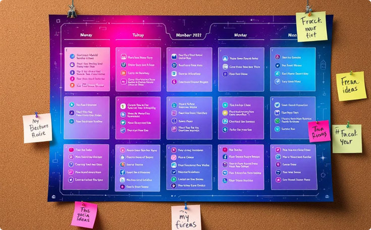 • Ideias prontas e categorizadas: Tenha um arsenal de conteúdo organizado e acessível.